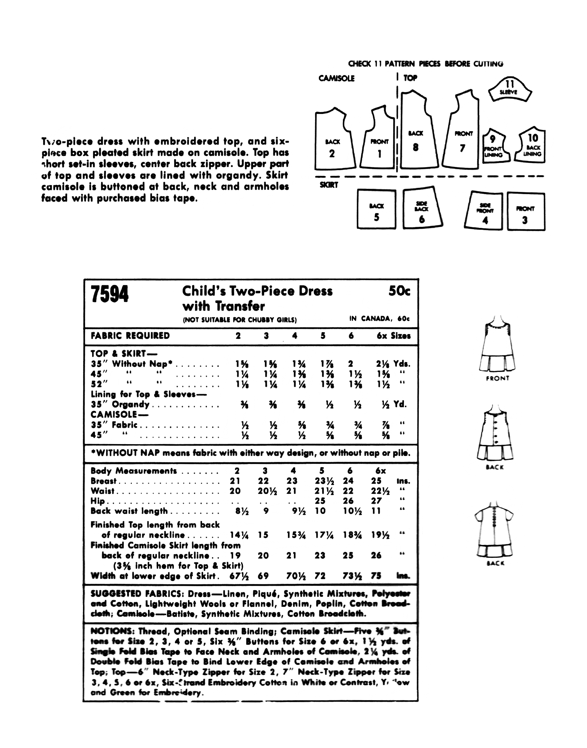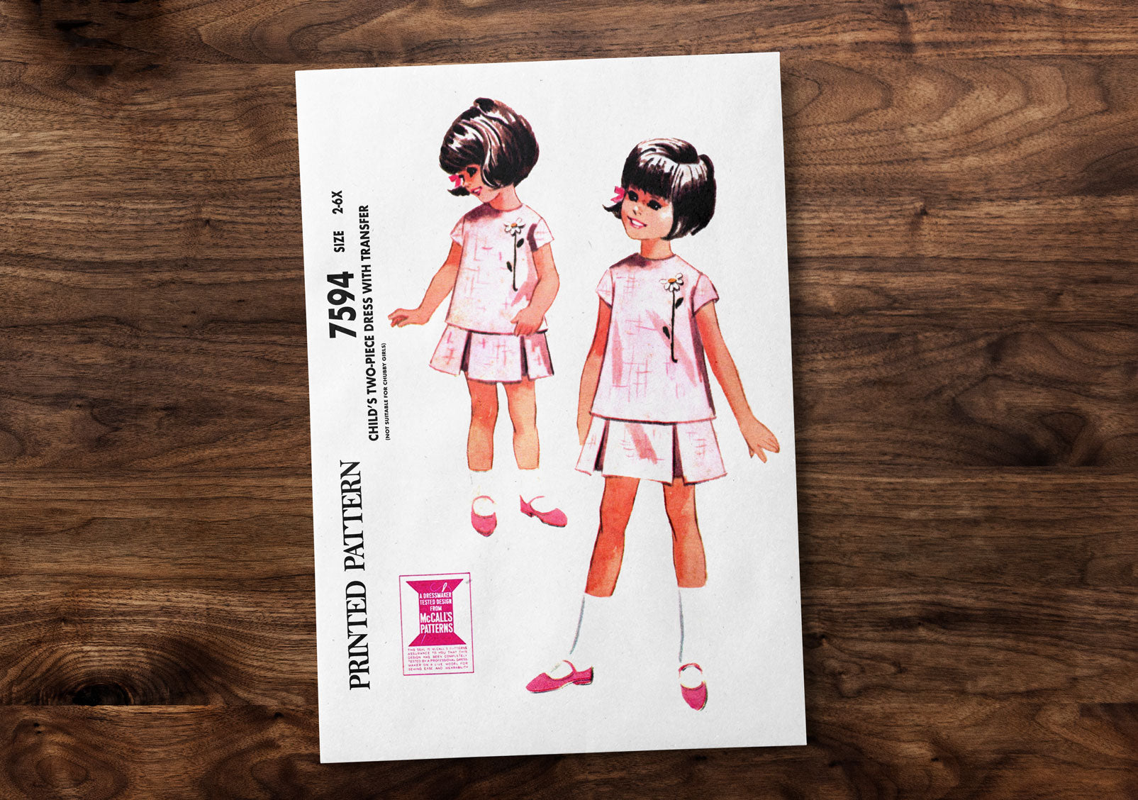 7594MC - Girl's two-piece dress with Daisy Embroidery - Toddler Child - *REPRODUCTION* - Available sizes: 2, 3, 4, 5, 6, 6X